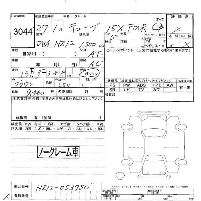 Nissan CUBE с аукциона Японии JU Hokkaido лот № 3044