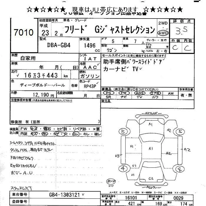 Honda FREED с аукциона Японии JU Hokkaido лот № 7010