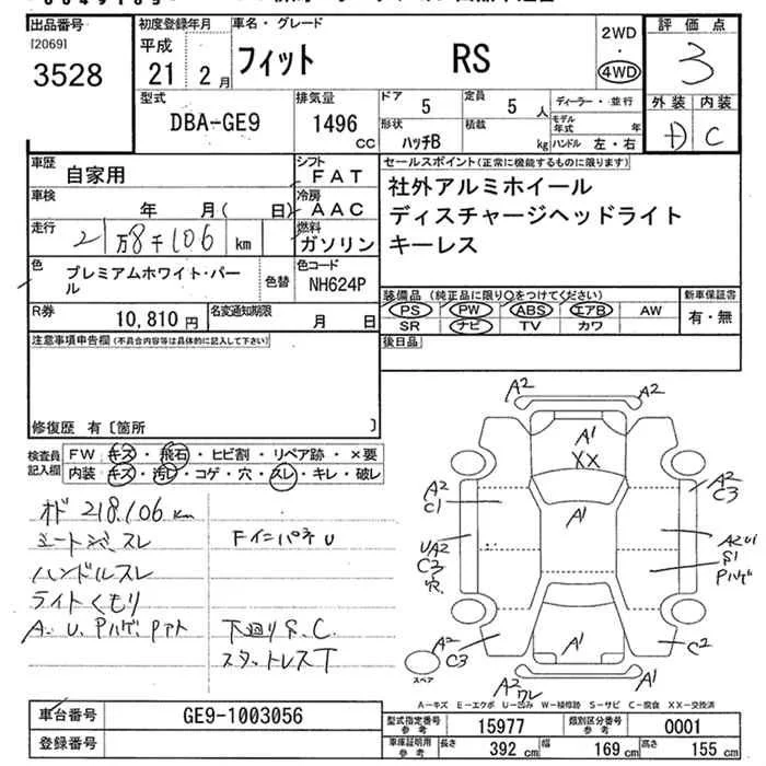 Honda FIT с аукциона Японии JU Niigata лот № 3528