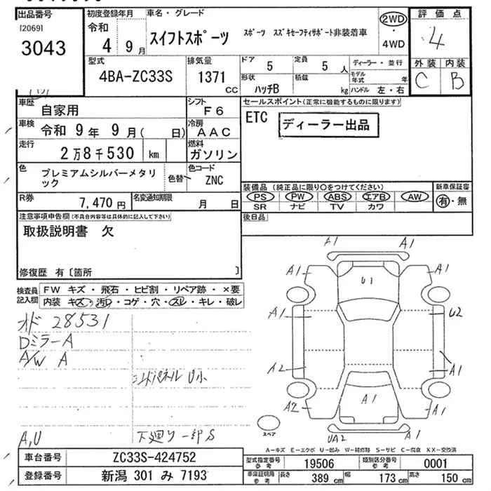 Suzuki SWIFT с аукциона Японии JU Niigata лот № 3043