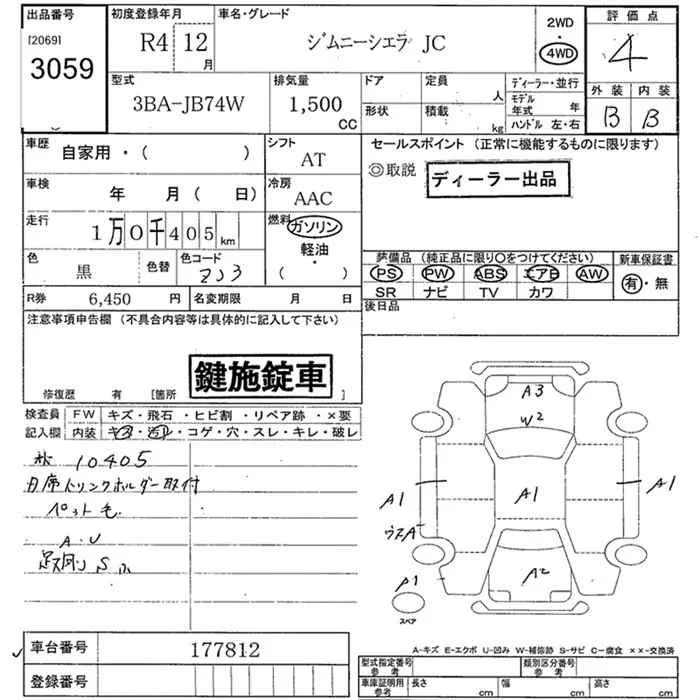 Suzuki JIMNY SIERRA с аукциона Японии JU Niigata лот № 3059