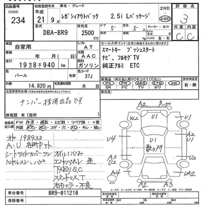 Subaru LEGACY OUTBACK с аукциона Японии JU Niigata лот № 234