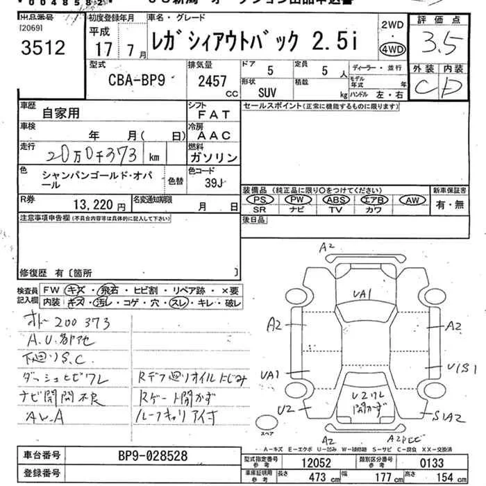 Subaru LEGACY OUTBACK с аукциона Японии JU Niigata лот № 3512