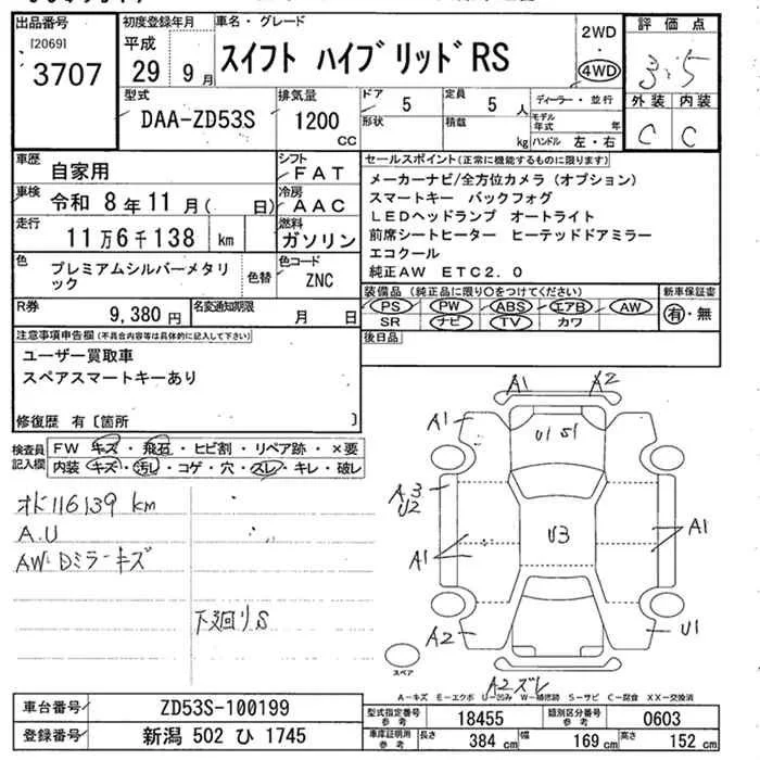 Suzuki SWIFT с аукциона Японии JU Niigata лот № 3707