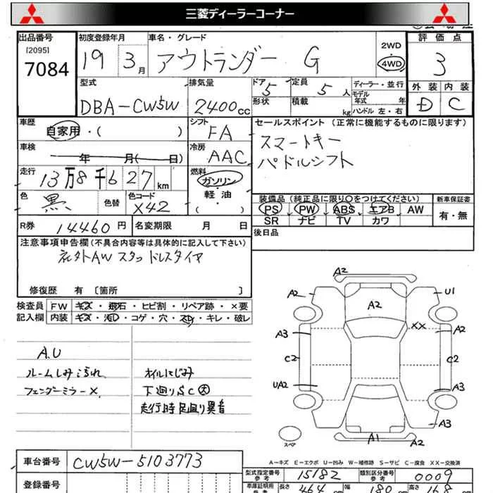 Mitsubishi OUTLANDER с аукциона Японии JU Miyagi лот № 7084