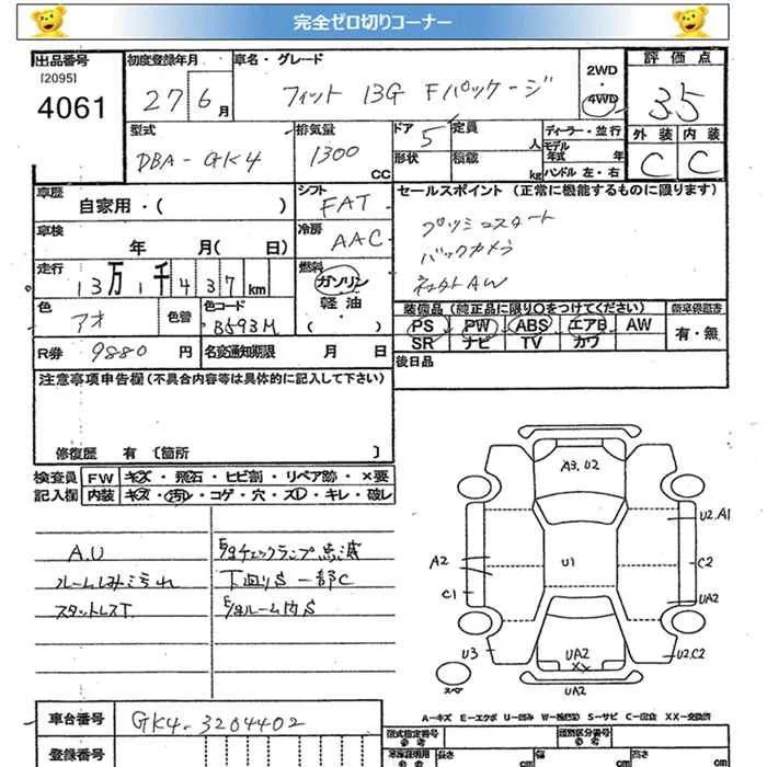 Honda FIT с аукциона Японии JU Miyagi лот № 4061