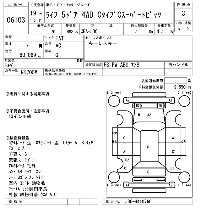 Honda LIFE с аукциона Японии ARAI Sendai лот № 6103