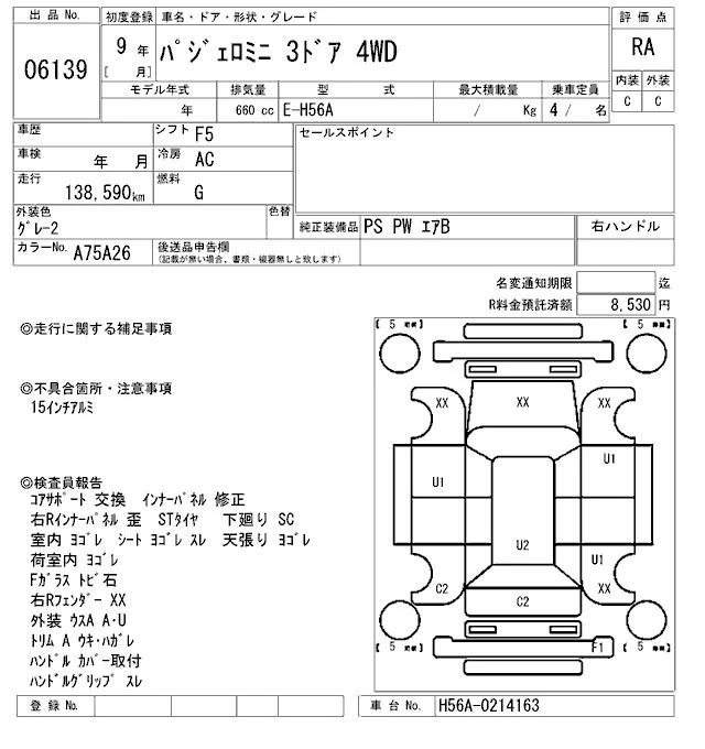 Mitsubishi PAJERO MINI с аукциона Японии ARAI Sendai лот № 6139