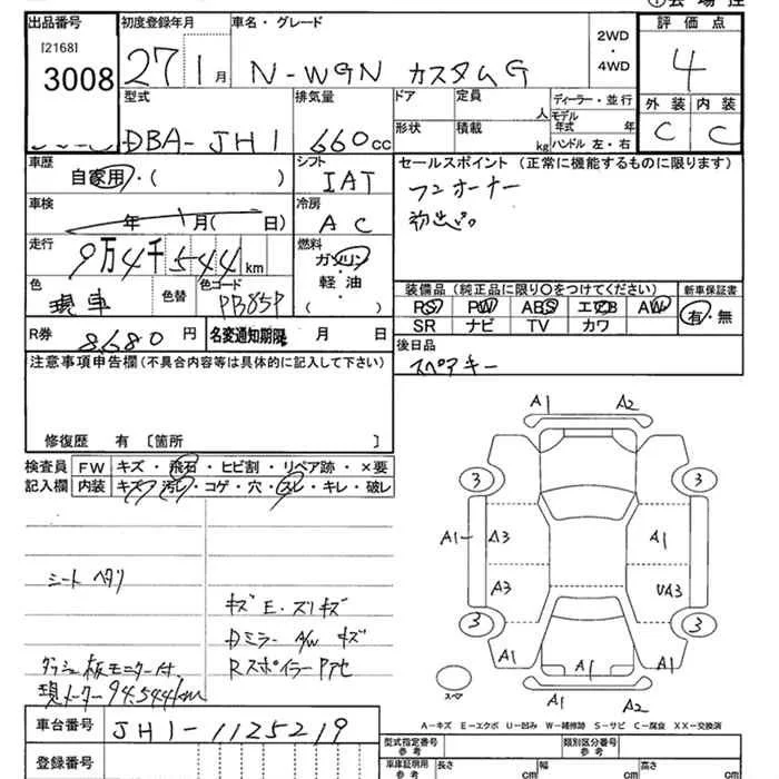 Honda N WGN с аукциона Японии JU Tochigi лот № 3008