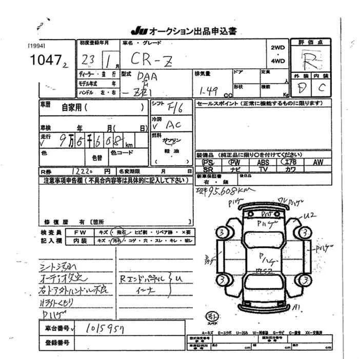 Honda CR-Z с аукциона Японии JU Okinawa лот № 1047