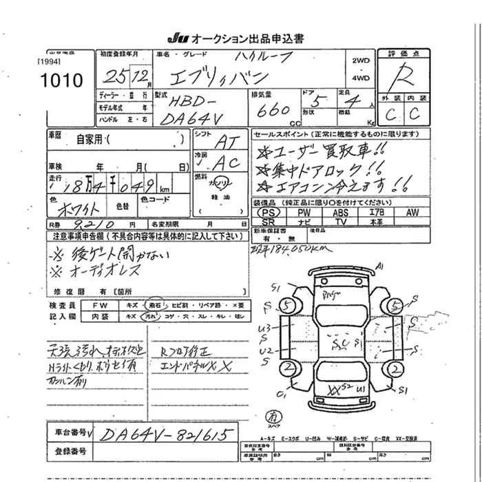 Suzuki EVERY с аукциона Японии JU Okinawa лот № 1010