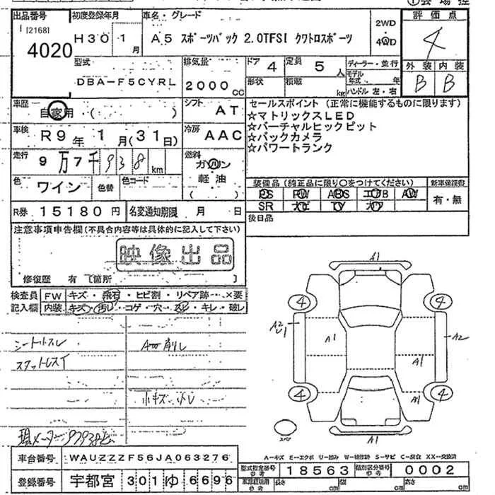 Audi A5 с аукциона Японии JU Tochigi лот № 4020