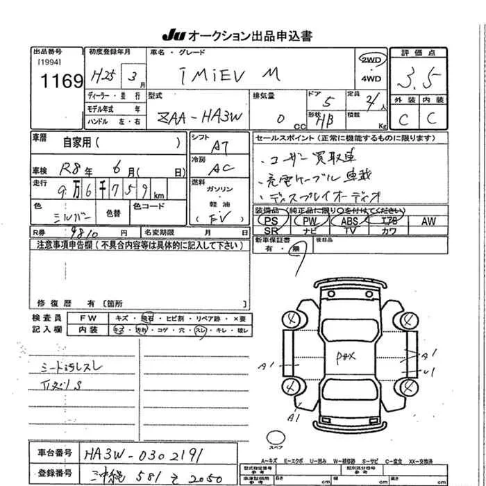 Mitsubishi I-MIEV с аукциона Японии JU Okinawa лот № 1169