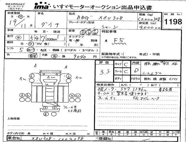 Toyota DYNA с аукциона Японии Isuzu Kobe лот № 1198
