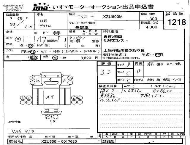 Hino DUTRO с аукциона Японии Isuzu Kobe лот № 1218