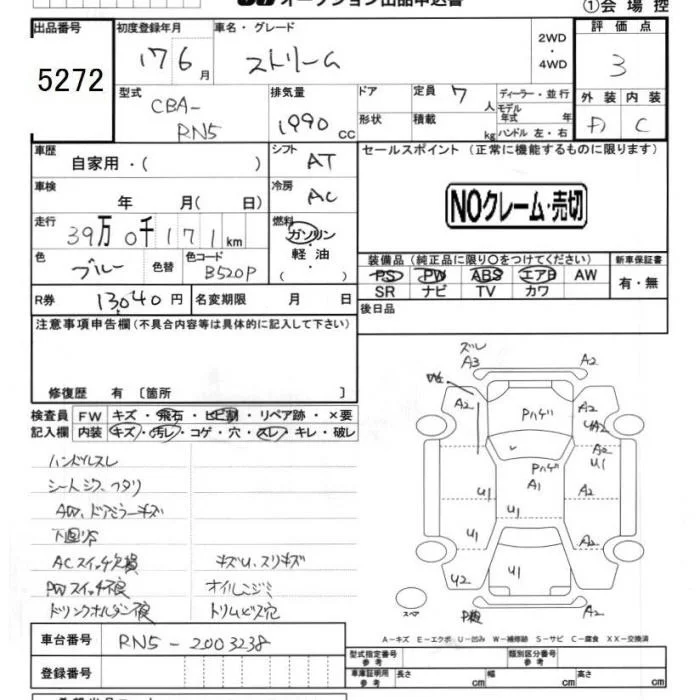 Honda STREAM с аукциона Японии JU Chiba лот № 5272