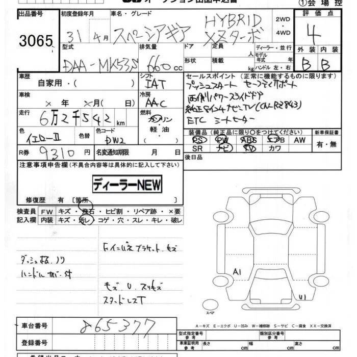 Suzuki SPACIA GEAR с аукциона Японии JU Chiba лот № 3065