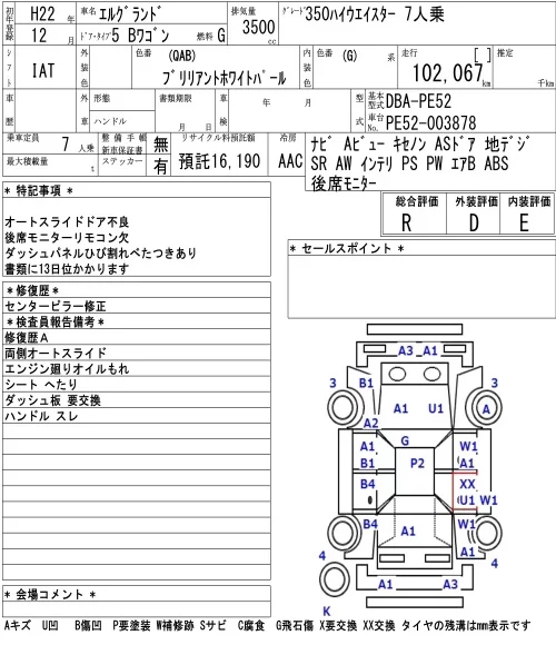 Nissan ELGRAND с аукциона Японии NAA Tokyo лот № 10