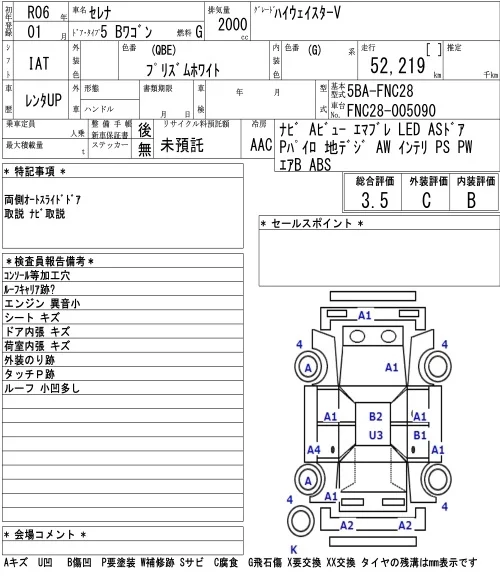 Nissan SERENA с аукциона Японии NAA Tokyo лот № 28