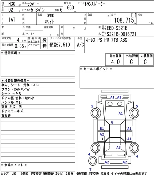 Subaru SAMBAR с аукциона Японии NAA Tokyo лот № 3091