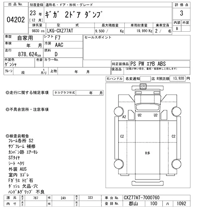 Isuzu GIGA с аукциона Японии ARAI Oyama VT лот № 4202