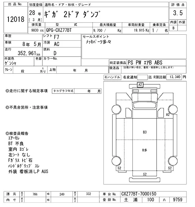 Isuzu GIGA с аукциона Японии ARAI Oyama VT лот № 12018