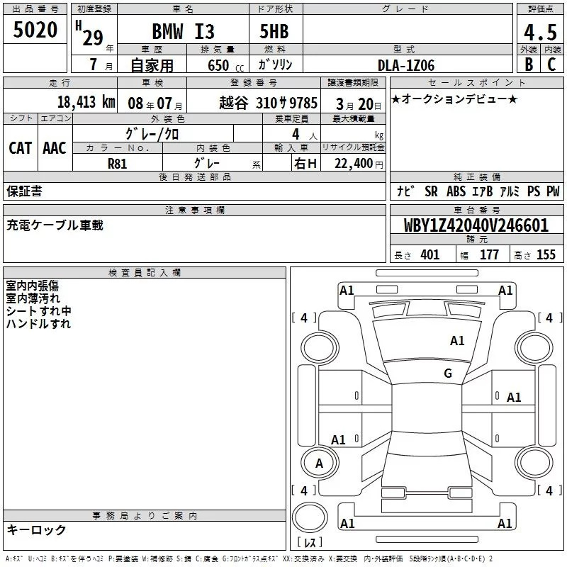 BMW i3 с аукциона Японии TAA Yokohama лот № 5020