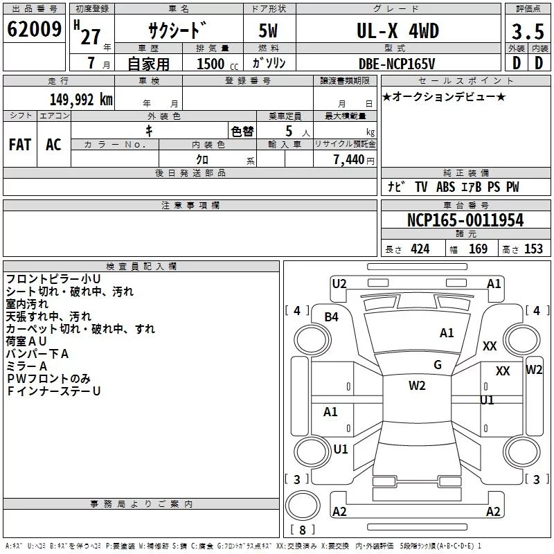 Toyota SUCCEED с аукциона Японии TAA Yokohama лот № 62009