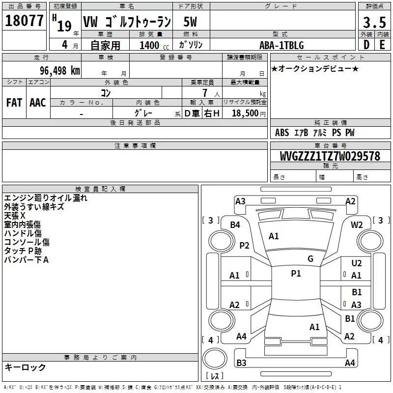 Volkswagen GOLF TOURAN с аукциона Японии TAA Yokohama лот № 18077