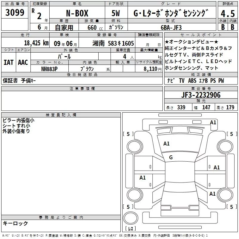 Honda N BOX с аукциона Японии TAA Yokohama лот № 3099