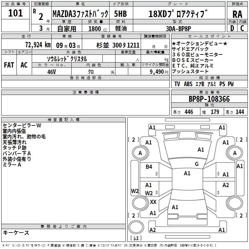 Mazda MAZDA3 с аукциона Японии TAA Yokohama лот № 101