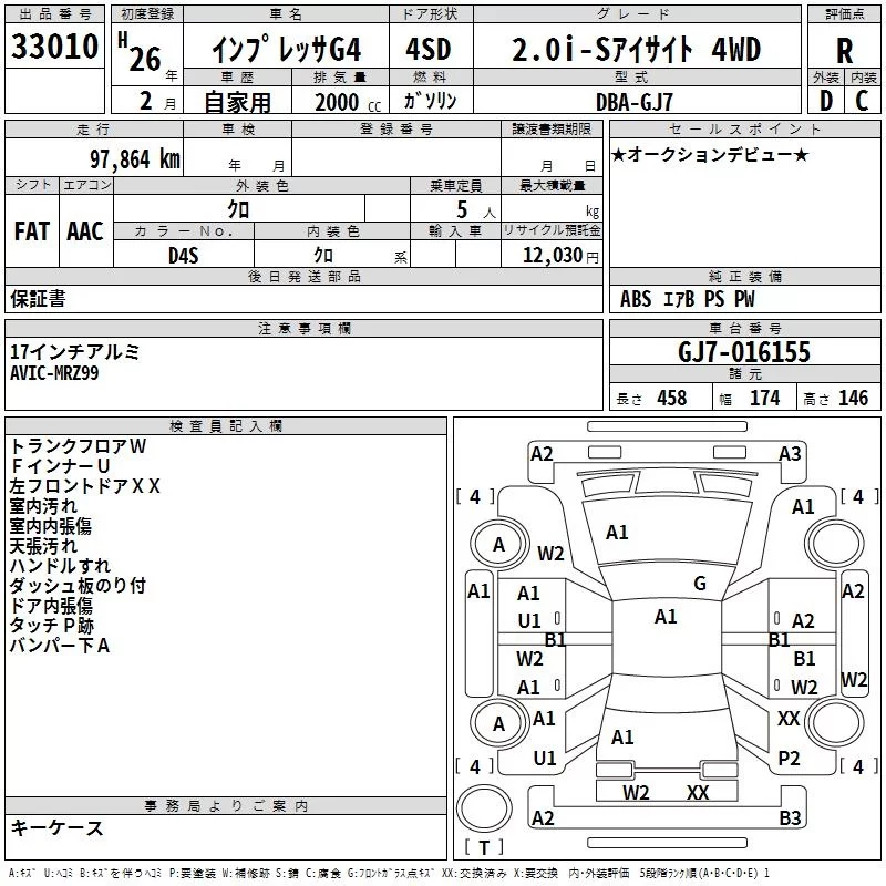 Subaru IMPREZA G4 с аукциона Японии TAA Yokohama лот № 33010