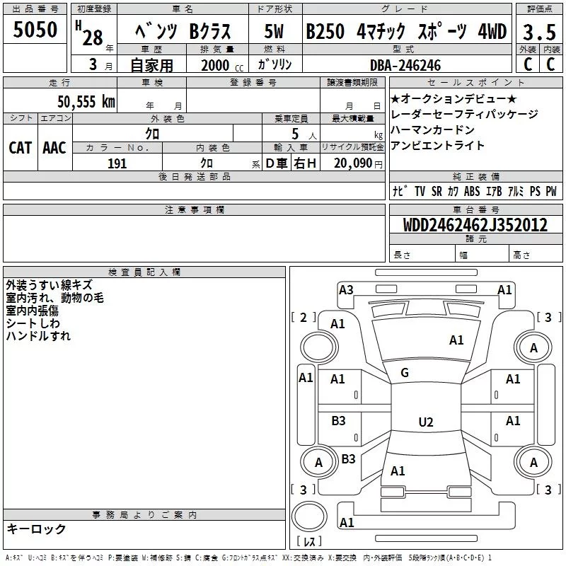 Mercedes-Benz B CLASS с аукциона Японии TAA Yokohama лот № 5050