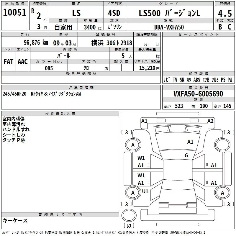 Lexus LS с аукциона Японии TAA Yokohama лот № 10051
