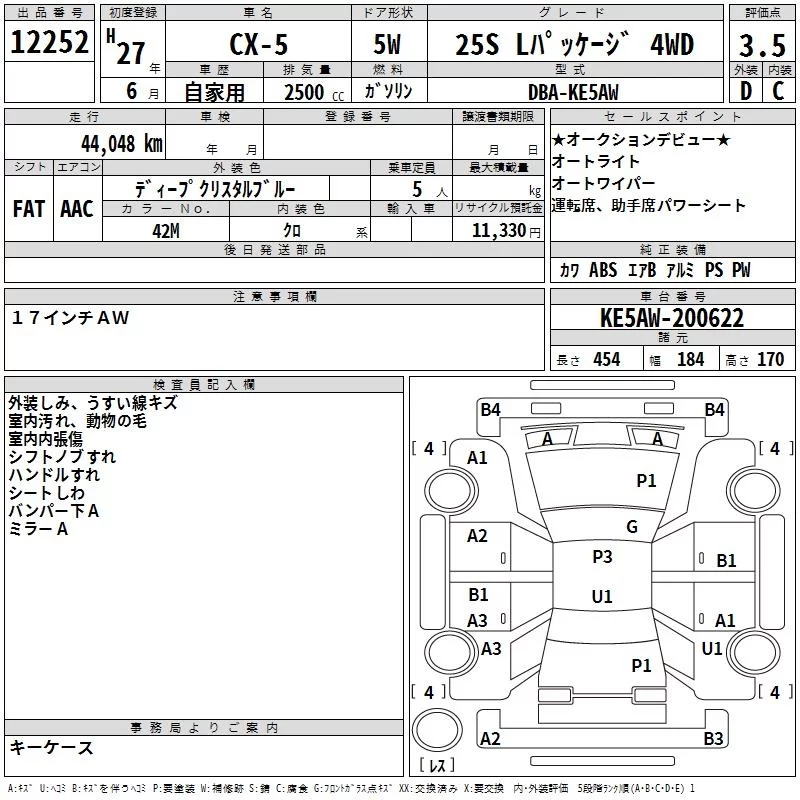 Mazda CX-5 с аукциона Японии TAA Yokohama лот № 12252