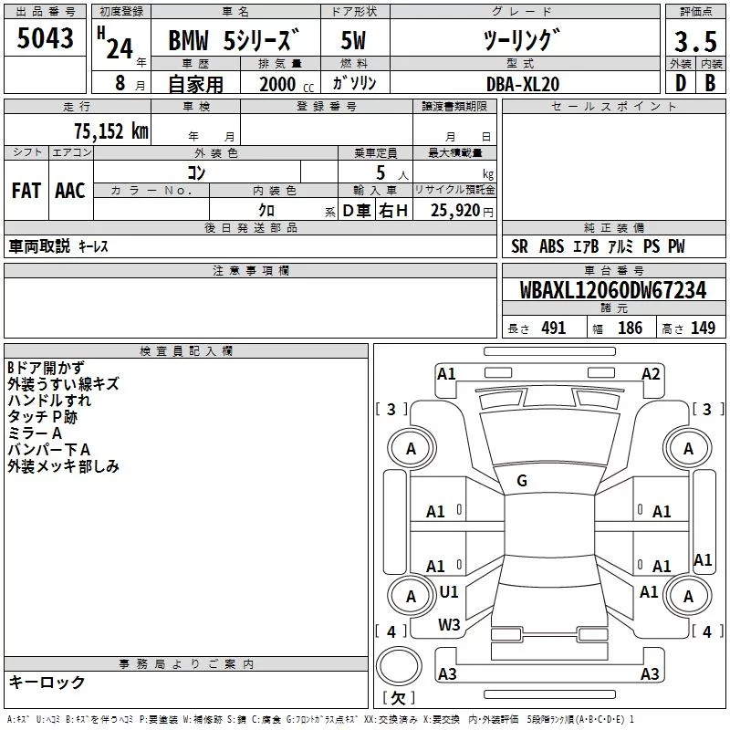 BMW 5-Series с аукциона Японии TAA Yokohama лот № 5043