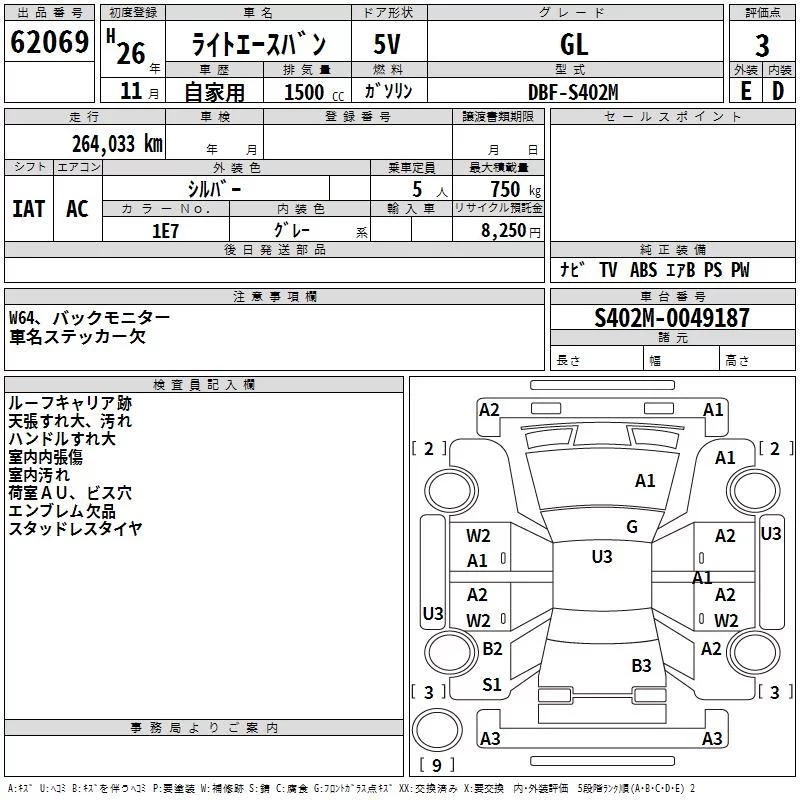 Toyota LITE ACE VAN с аукциона Японии TAA Yokohama лот № 62069