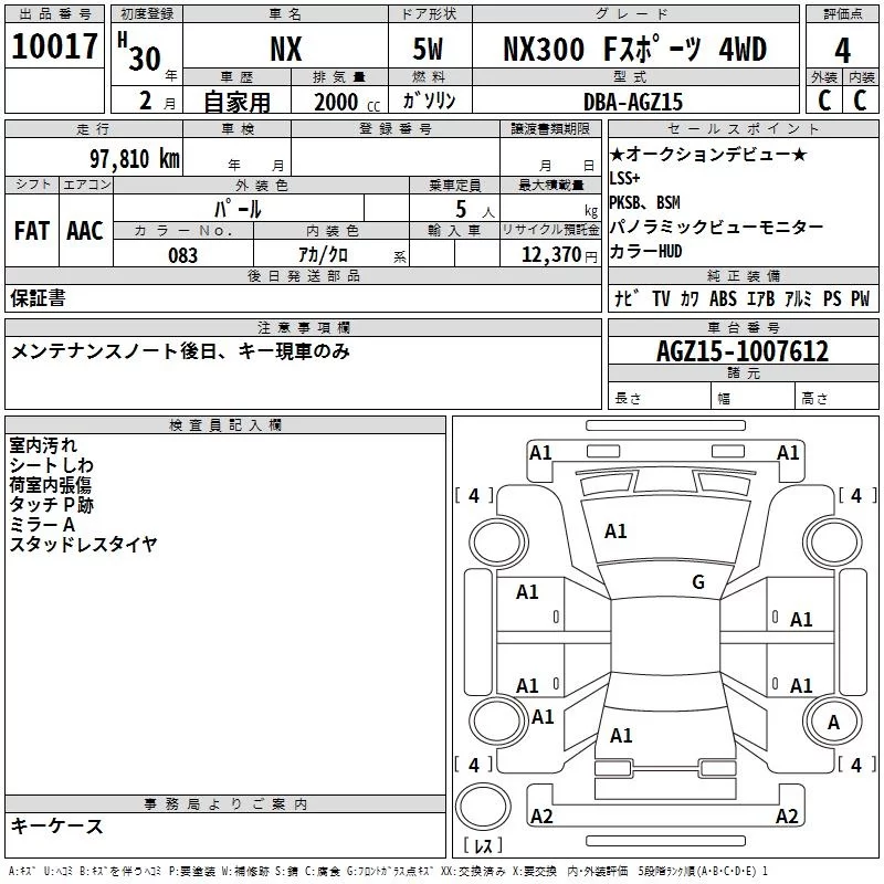 Lexus NX с аукциона Японии TAA Yokohama лот № 10017