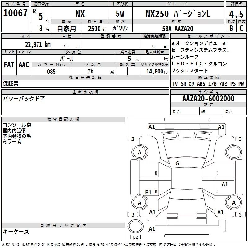 Lexus NX с аукциона Японии TAA Yokohama лот № 10067