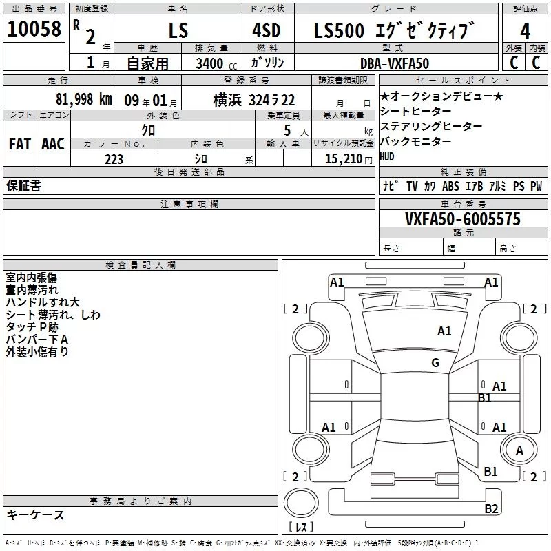 Lexus LS с аукциона Японии TAA Yokohama лот № 10058
