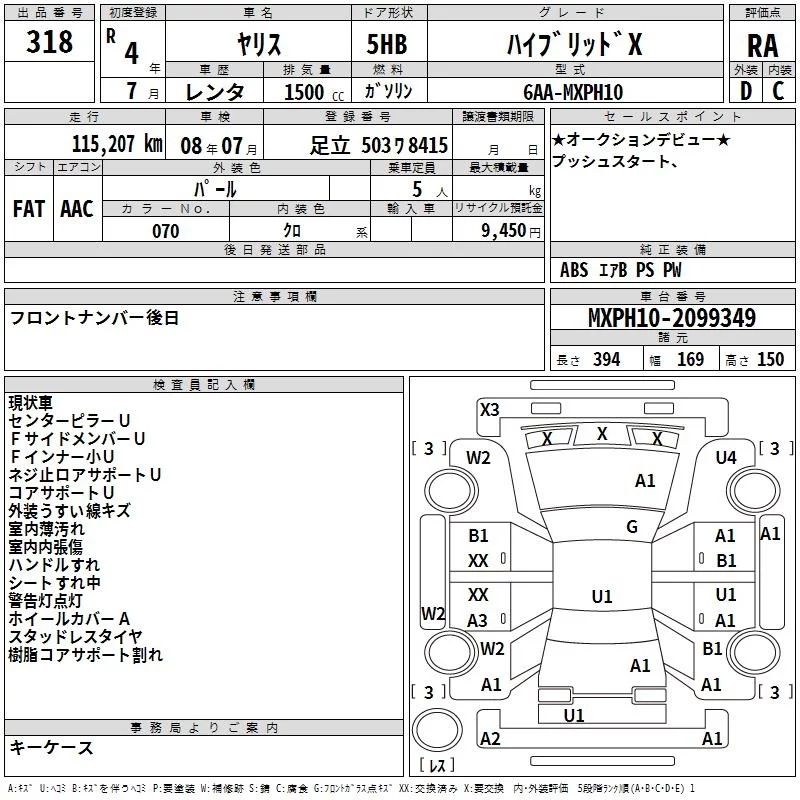 Toyota YARIS с аукциона Японии TAA Yokohama лот № 318