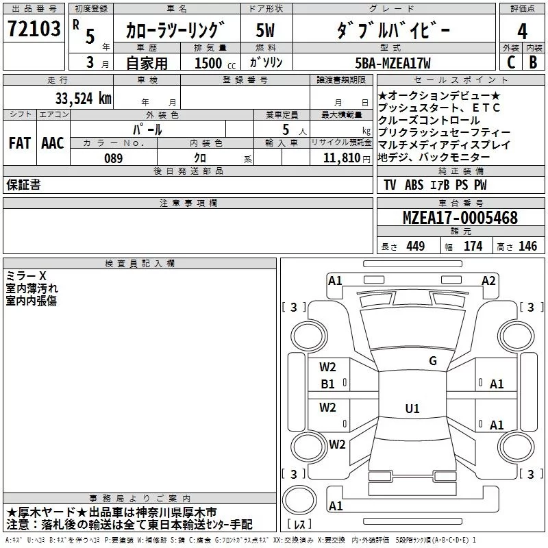 Toyota COROLLA TOURING с аукциона Японии TAA Yokohama лот № 72103