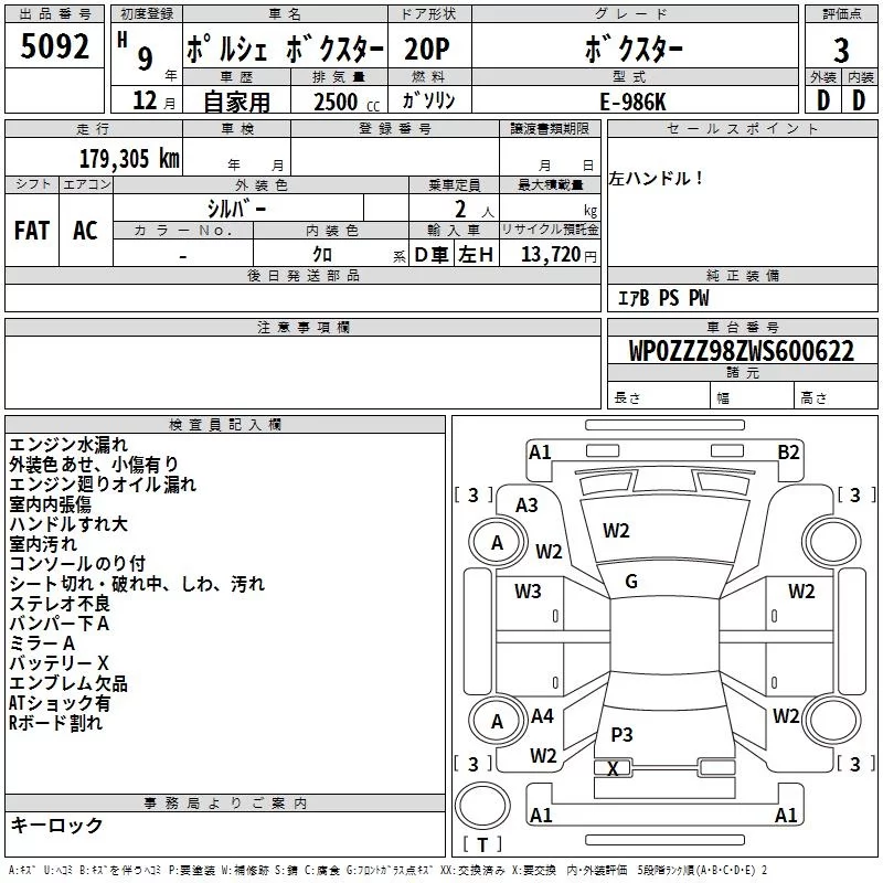 Porsche Boxster с аукциона Японии TAA Yokohama лот № 5092