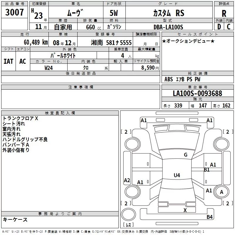 Daihatsu MOVE с аукциона Японии TAA Yokohama лот № 3007