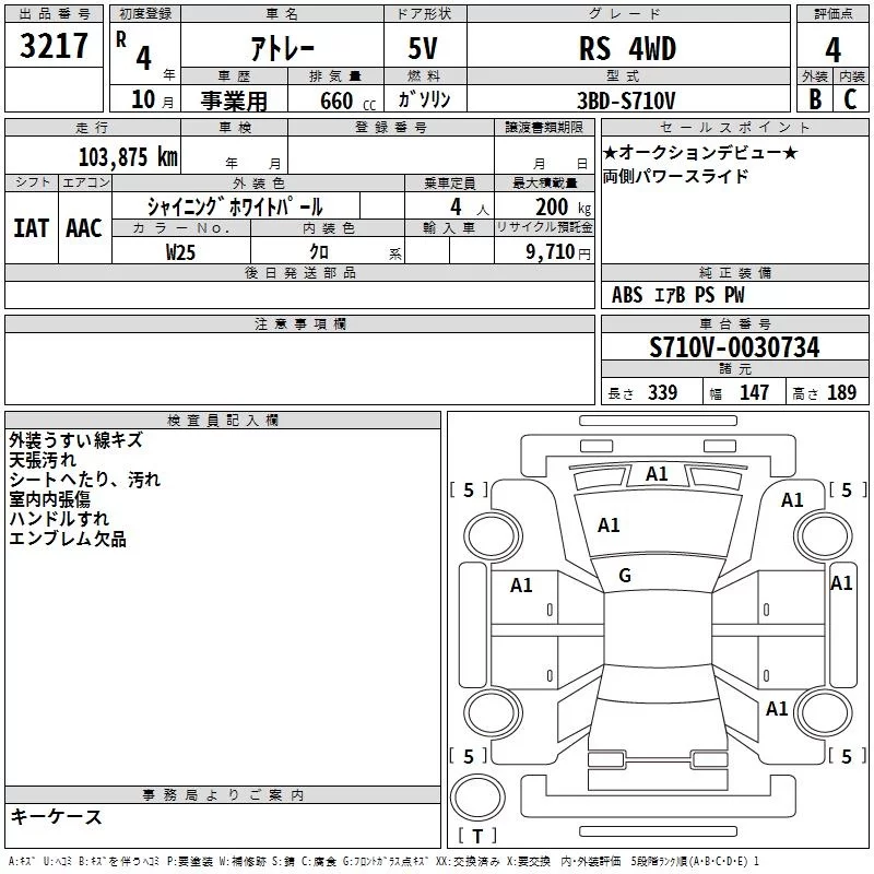 Daihatsu ATRAI VAN с аукциона Японии TAA Yokohama лот № 3217