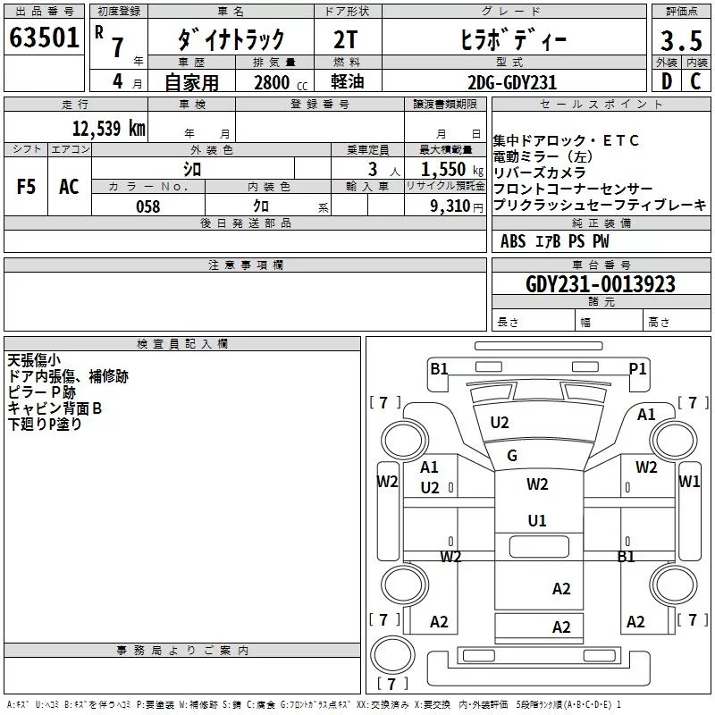 Toyota DYNA с аукциона Японии TAA Yokohama лот № 63501