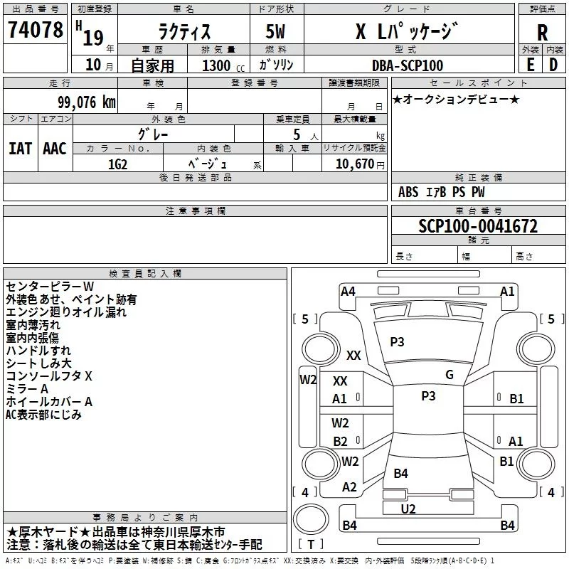 Toyota RACTIS с аукциона Японии TAA Yokohama лот № 74078