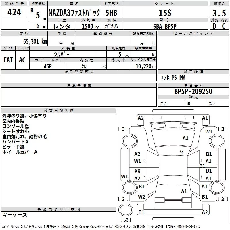 Mazda MAZDA3 с аукциона Японии TAA Yokohama лот № 424