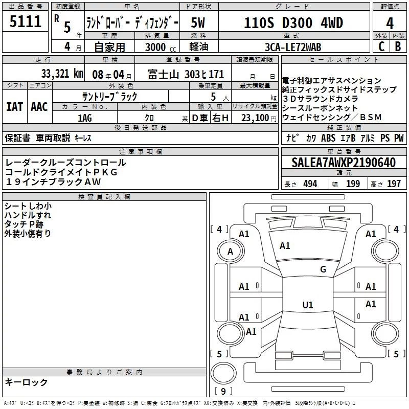 Rover DEFENDER с аукциона Японии TAA Yokohama лот № 5111