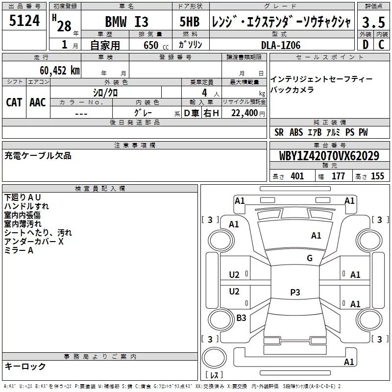 BMW i3 с аукциона Японии TAA Yokohama лот № 5124